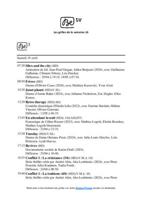 [To Parent Directory] 6/3/2025 11:02 AM 485141 Be tv - Les grilles de la semaine 16.pdf 6/3/2025 11:02 AM 1074 Be tv - Les grilles de la semaine 16_pdf_th_S.jpg 6/3/2025 11:02 AM 24415 Be tv - Les grilles de la semaine 16_pdf_th_X.jpg